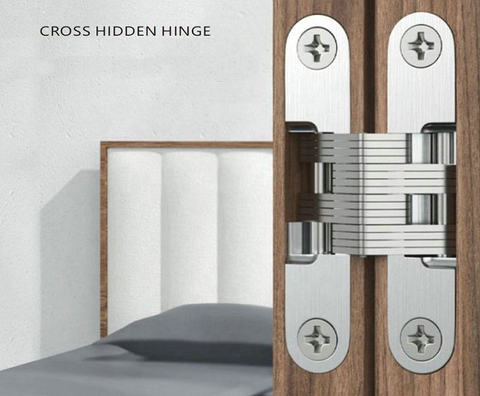 Bisagra oculta cruzada Cromo satinado 180 ° Abrir y cerrar Bisagra cruzada oculta invisible para puerta de gabinete Puerta invisible